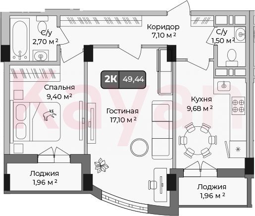 Квартира в ЖК «Опера» (СЗ Среда) литер 3 очередь 1, Монолитный, 2 к.кв., 47.48 кв.м., 1/9, высота потолков: 2.8 м, жилая площадь: 26.5 кв.м., возможна ипотека, площадь кухни 9.68 кв.м.,