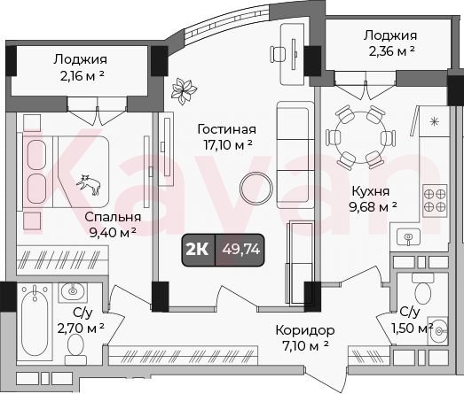 Продажа 2-комн. квартиры, 47.48 кв.м