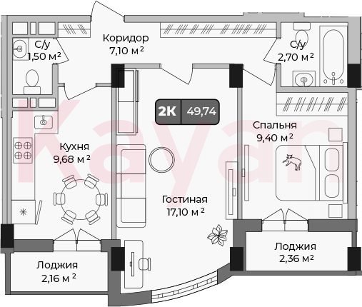 Продажа 2-комн. квартиры, 47.48 кв.м