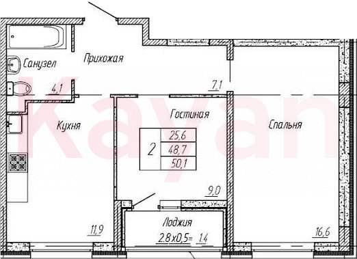 Продажа 2-комн. квартиры, 48.7 кв.м