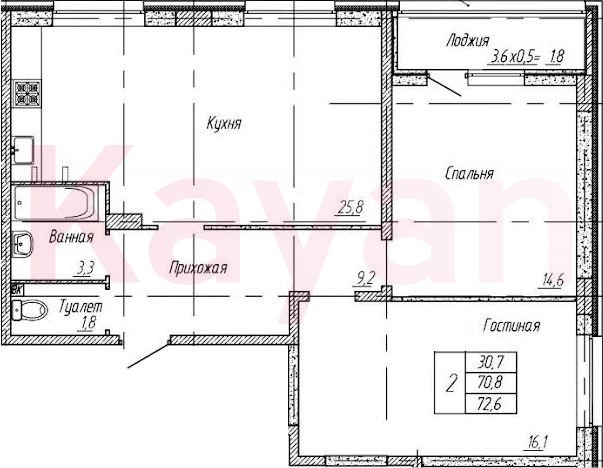 Продажа 2-комн. квартиры, 70.3 кв.м