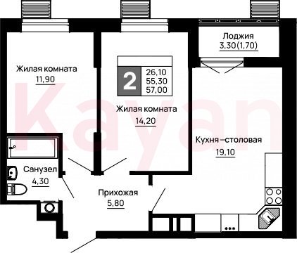 Продажа 2-комн. квартиры, 55.3 кв.м