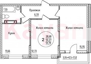 Продажа 2-комн. квартиры, 50.27 кв.м
