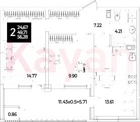 Продажа 2-комн. квартиры, 49.71 кв.м