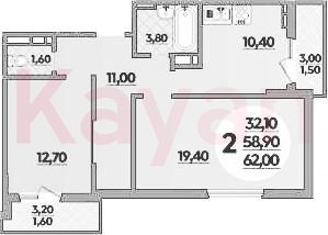 Продажа 2-комн. квартиры, 58.9 кв.м