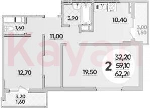 Продажа 2-комн. квартиры, 58.9 кв.м