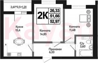 Продажа 2-комн. квартиры, 51.66 кв.м