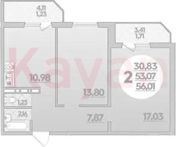 Продажа 2-комн. квартиры, 53.07 кв.м