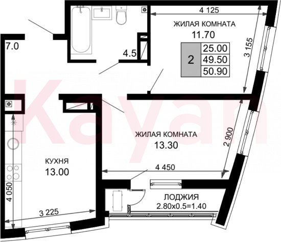 Продажа 2-комн. квартиры, 49.5 кв.м