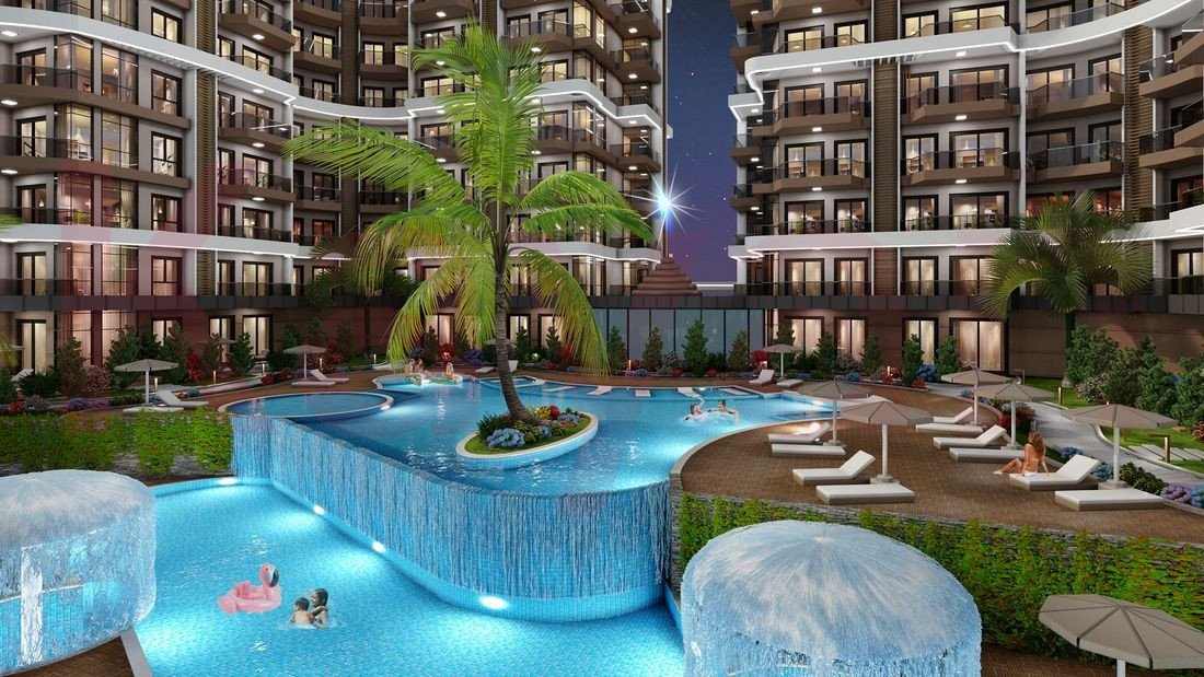 Представляем новый проект в Алании, район Авсаллар. Комплекс находится всего в 350 метрах от великолепного пляжа Инжекум, в окружении соснового леса.