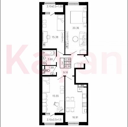 Продажа 3-комн. квартиры, 86.44 кв.м