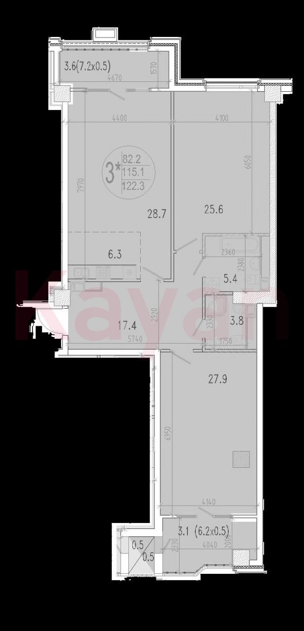Квартира в ЖК «Development-Plaza (Девелопмент-Плаза)» (Девелопмент-ЮГ. Краснодар) литер 1 очередь 1, Газобетон-монолит, 3 к.кв., 115.6 кв.м., 5/15, высота потолков: 3.6 м, жилая площадь: 53.5 кв.м., возможна ипотека, площадь кухни 35 кв.м.,