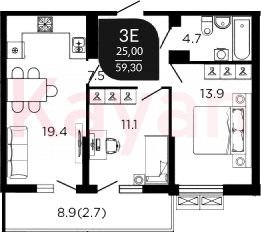 Продажа 3-комн. квартиры, 58.1 кв.м