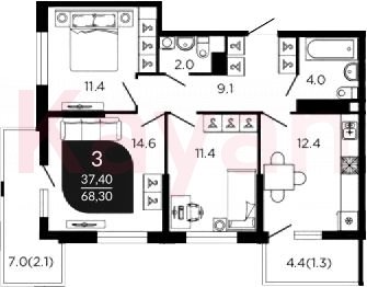 Продажа 3-комн. квартиры, 66.8 кв.м