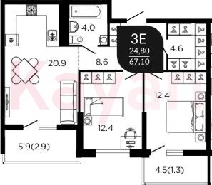 Продажа 3-комн. квартиры, 64.9 кв.м