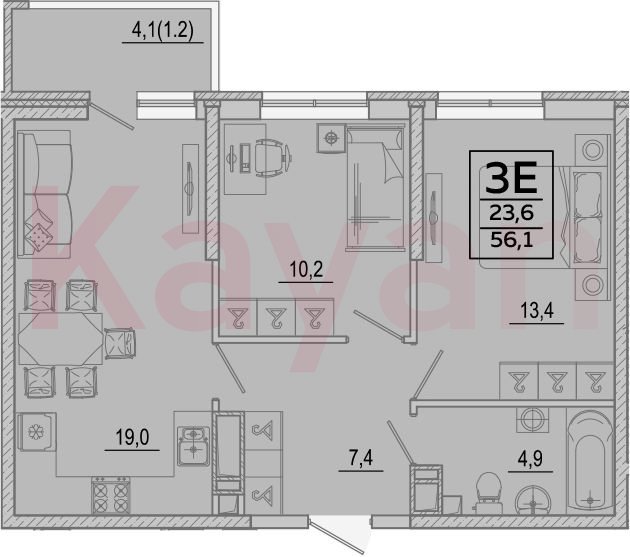Продажа 3-комн. квартиры, 54.9 кв.м