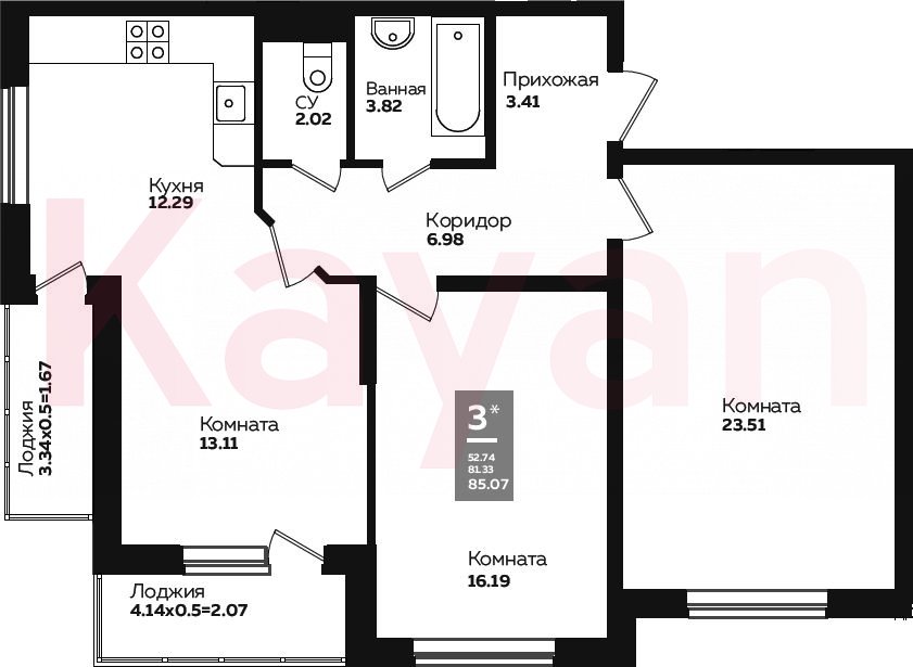 Продажа 3-комн. квартиры, 78.16 кв.м