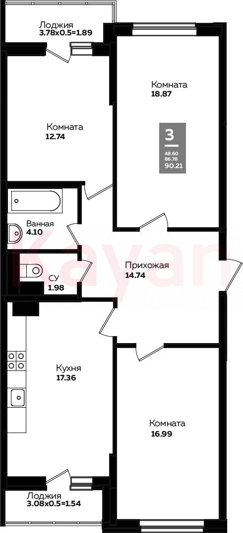 Продажа 3-комн. квартиры, 83.97 кв.м