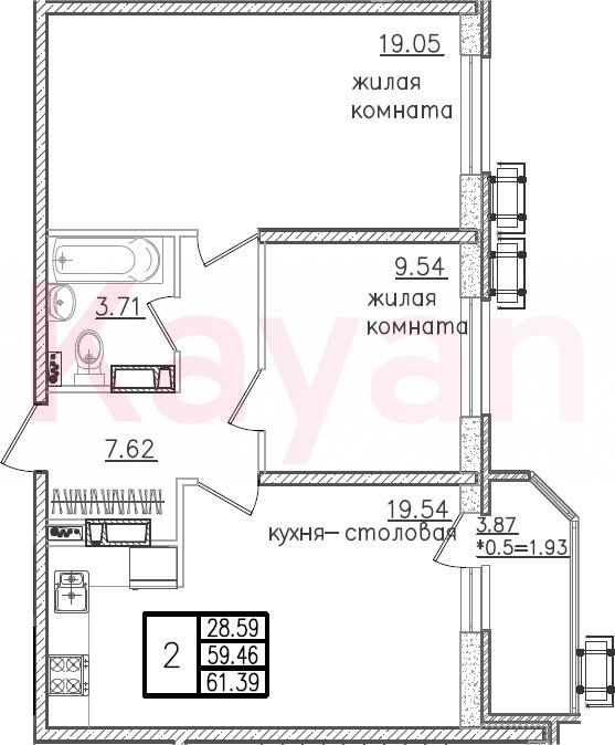 Продажа 3-комн. квартиры, 59.46 кв.м