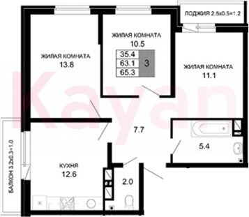 Продажа 3-комн. квартиры, 63.1 кв.м