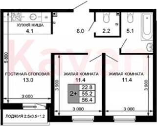 Продажа 3-комн. квартиры, 55.2 кв.м
