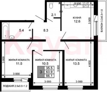 Продажа 3-комн. квартиры, 63.9 кв.м