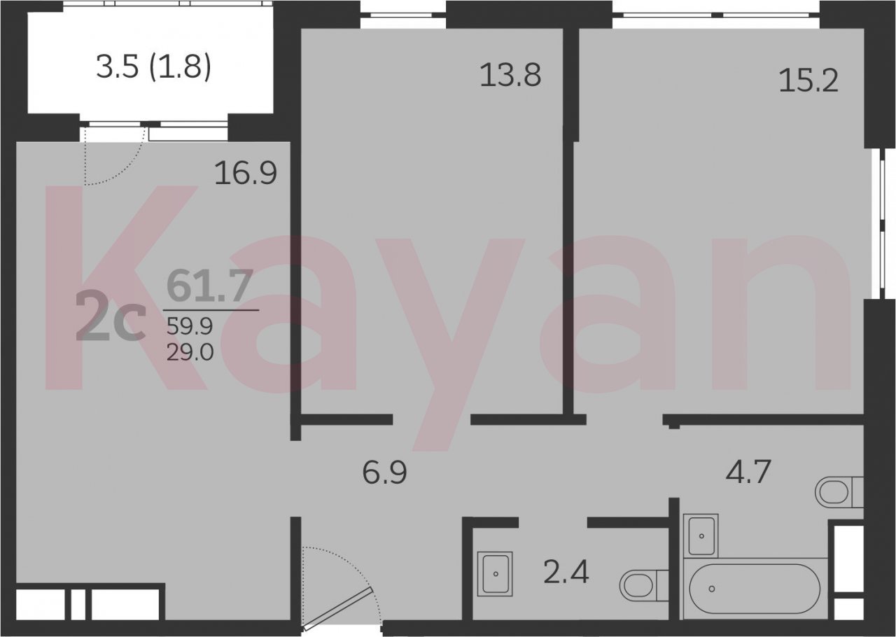 Продажа 3-комн. квартиры, 59.9 кв.м