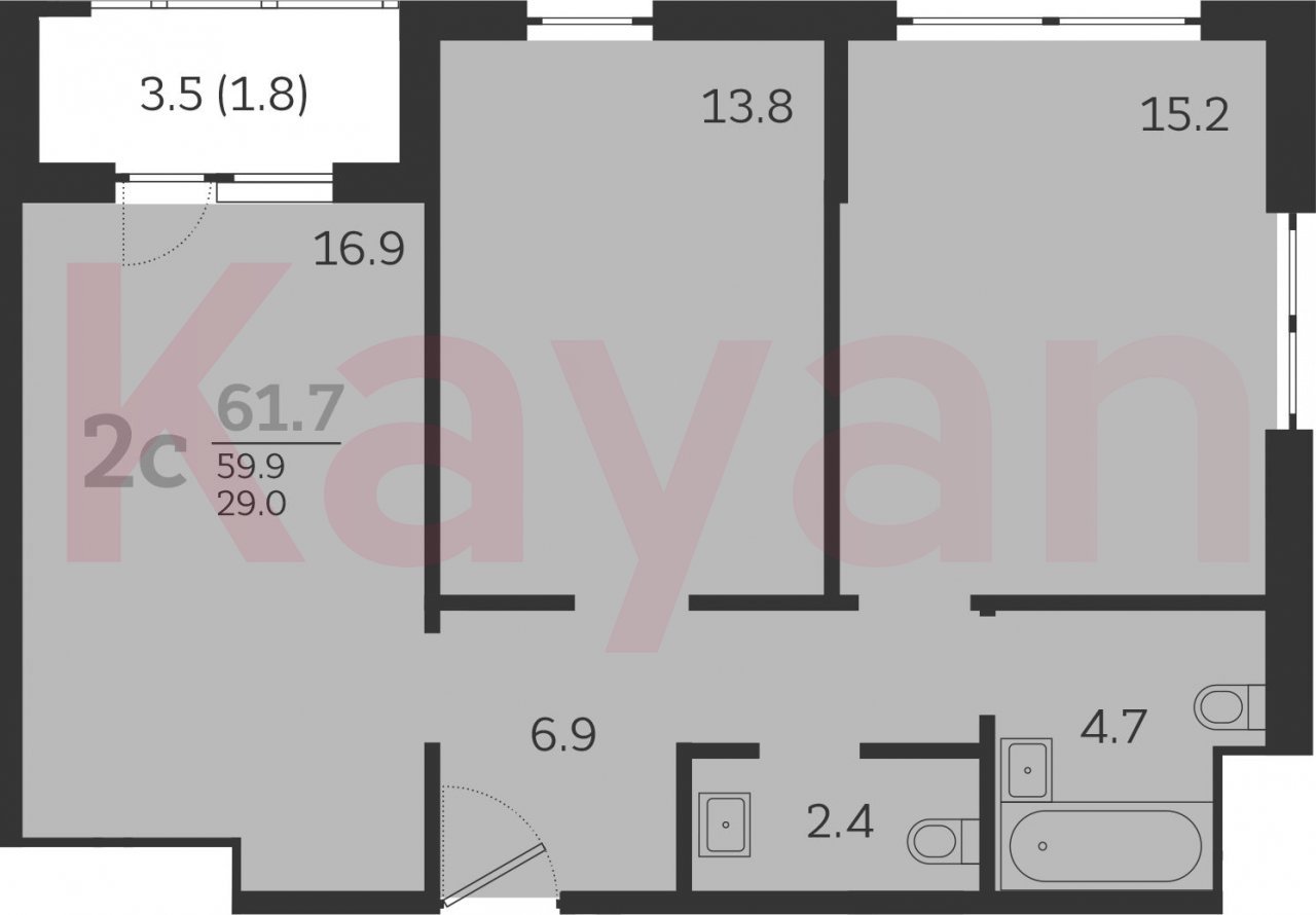 Квартира в ЖК Все свои (Семья) литер 8 очередь 3, Газобетон-монолит, 3 к.кв., 59.9 кв.м., 12/24, высота потолков: 2.7 м, жилая площадь: 29 кв.м., возможна ипотека, площадь кухни 16.9 кв.м.,