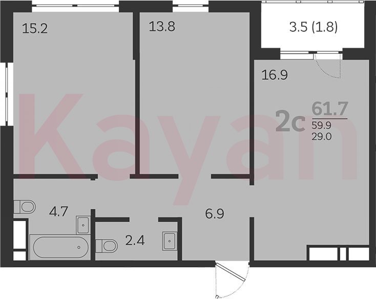 Продажа 3-комн. квартиры, 59.9 кв.м