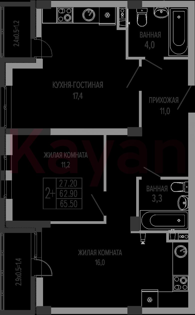 Продажа 3-комн. квартиры, 62.9 кв.м