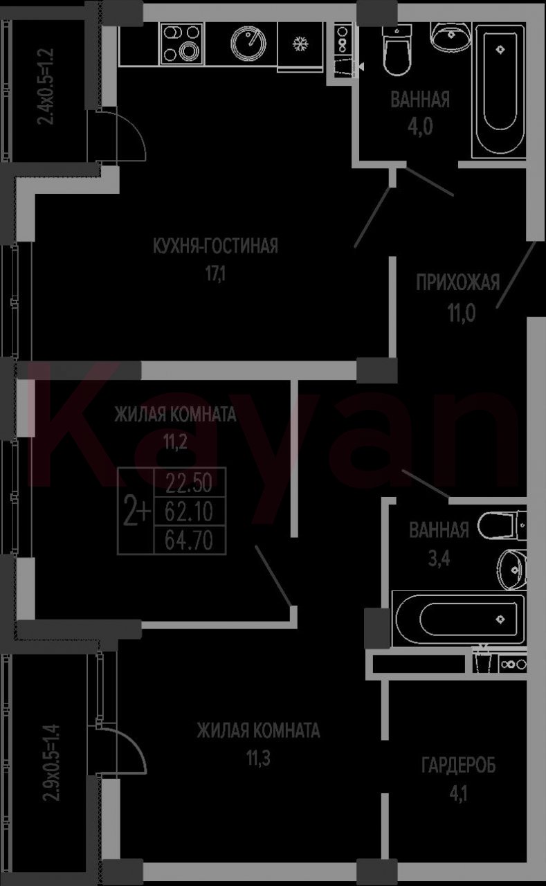 Продажа 3-комн. квартиры, 62.1 кв.м