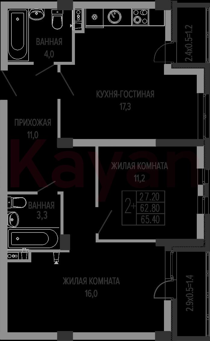Продажа 3-комн. квартиры, 62.8 кв.м