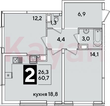 Продажа 3-комн. квартиры, 60.7 кв.м