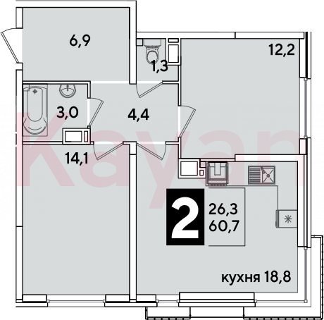 Продажа 3-комн. квартиры, 60.7 кв.м