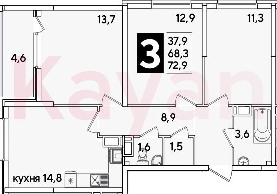 Продажа 3-комн. квартиры, 68.3 кв.м