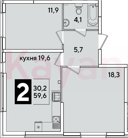 Квартира в ЖК Самолет (DOGMA. Краснодар) литер 52 очередь 6, Кирпично-монолитный, 3 к.кв., 59.6 кв.м., 2/16, высота потолков: 2.89 м, жилая площадь: 30.2 кв.м., возможна ипотека, возможна военная ипотека, площадь кухни 19.6 кв.м.,