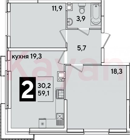 Квартира в ЖК Самолет (DOGMA. Краснодар) литер 54 очередь 6, Кирпично-монолитный, 3 к.кв., 59.1 кв.м., 2/16, высота потолков: 2.89 м, жилая площадь: 30.2 кв.м., возможна ипотека, возможна военная ипотека, площадь кухни 19.3 кв.м.,