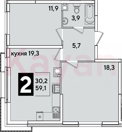 Квартира в ЖК Самолет (DOGMA. Краснодар) литер 55 очередь 6, Кирпично-монолитный, 3 к.кв., 59.1 кв.м., 5/16, высота потолков: 2.89 м, жилая площадь: 30.2 кв.м., возможна ипотека, возможна военная ипотека, площадь кухни 19.3 кв.м.,