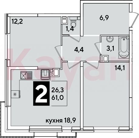 Квартира в ЖК Самолет (DOGMA. Краснодар) литер 57 очередь 6, Кирпично-монолитный, 3 к.кв., 61 кв.м., 4/16, высота потолков: 2.89 м, жилая площадь: 26.3 кв.м., возможна ипотека, возможна военная ипотека, площадь кухни 18.9 кв.м.,