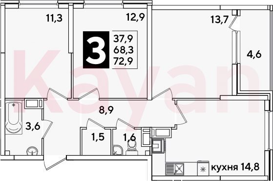 Продажа 3-комн. квартиры, 68.3 кв.м