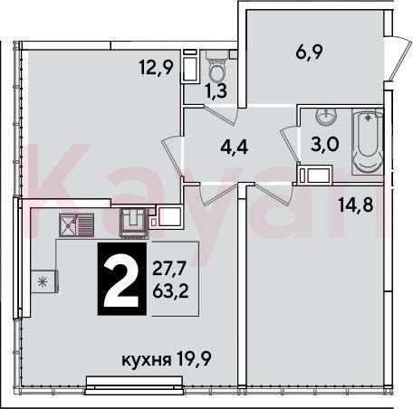 Продажа 3-комн. квартиры, 63.2 кв.м