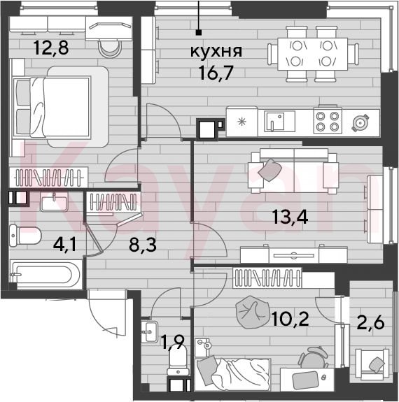 Квартира в ЖК «Dogma park (Догма парк)» (DOGMA. Краснодар) литер 9 очередь 1, Кирпично-монолитный, 3 к.кв., 67.4 кв.м., 9/16, высота потолков: 2.72 м, жилая площадь: 36.4 кв.м., возможна ипотека, возможна военная ипотека, площадь кухни 16.7 кв.м.,