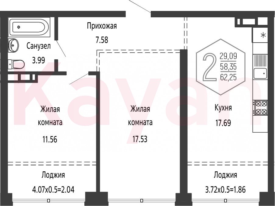 Продажа 3-комн. квартиры, 58.35 кв.м