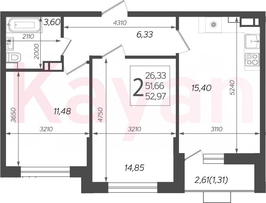 Продажа 3-комн. квартиры, 51.66 кв.м