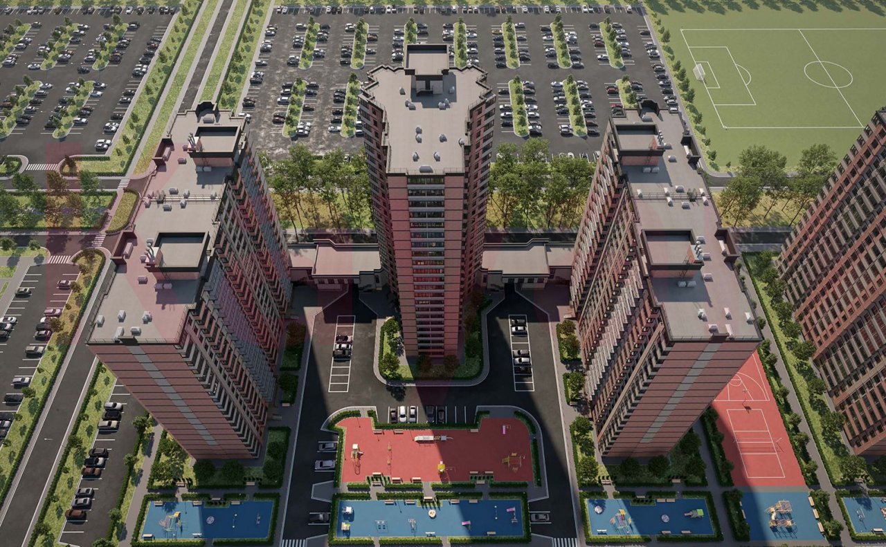 Территория жилого комплекса закрытая. Во дворах установлены детские и спортивные площадки, обустроенные зеленые аллеи с зонами отдыха, перголами, беседками. Для владельцев автомобилей предусмотрено 2 многоуровневых паркинга.