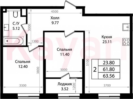 Продажа 3-комн. квартиры, 61.8 кв.м