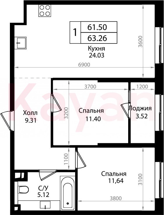 Продажа 3-комн. квартиры, 61.5 кв.м