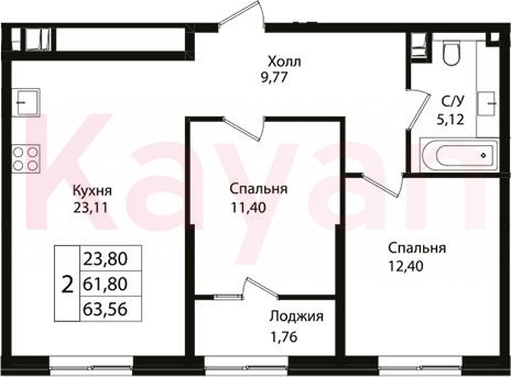 Квартира в ЖК «Патрики» (ГК Точно. Краснодарский край) литер 1.3 очередь 1, Кирпично-монолитный, 3 к.кв., 61.8 кв.м., 6/9, высота потолков: 2.7 м, жилая площадь: 23.8 кв.м., возможна ипотека, площадь кухни 23.11 кв.м.,