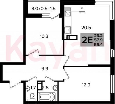 Продажа 3-комн. квартиры, 57.9 кв.м