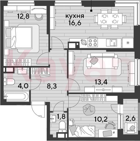 Квартира в ЖК «Dogma park (Догма парк)» (DOGMA. Краснодар) литер 1 очередь 1, Кирпично-монолитный, 3 к.кв., 67.1 кв.м., 11/16, высота потолков: 2.72 м, жилая площадь: 36.4 кв.м., возможна ипотека, возможна военная ипотека, площадь кухни 16.6 кв.м.,